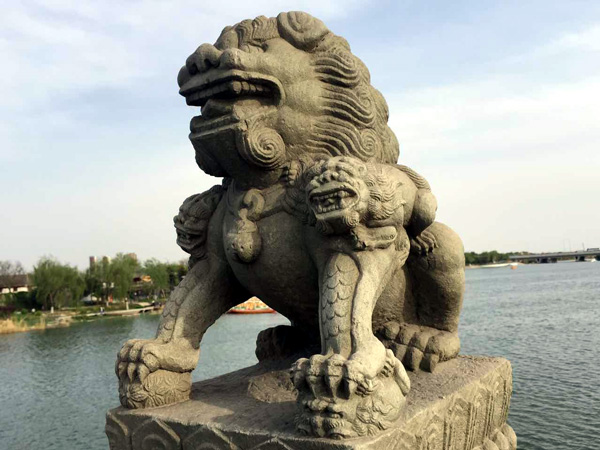 北京有句歇后語(yǔ):“盧溝橋的獅子——數(shù)不清。”這座獅子多得數(shù)不清的橋,建于1189年。這是一座聯(lián)拱石橋,總長(zhǎng)約266米,有281根望柱,每根柱子上都雕著獅子。要不仔細(xì)數(shù),真是數(shù)不清呢。