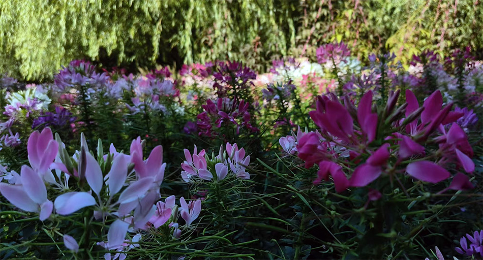 海淀公園的“淀園花谷”里培植了一條仿自然花徑。這條花徑的設(shè)計者看來很有西方油畫基礎(chǔ),利用花草天然的色彩,將大量同色植物擺放在一起,與相鄰不同顏色的植物片區(qū),形成大片色塊碰撞的效果。遠遠看上去,好像畫家打翻了調(diào)料盤。敏銳的網(wǎng)友很快就發(fā)現(xiàn),這如同法國印象派畫家莫奈的畫風。巧的是,在現(xiàn)實中莫奈真的有這么一片花園,于是海淀花園就被稱為現(xiàn)實版的“莫奈花園”。