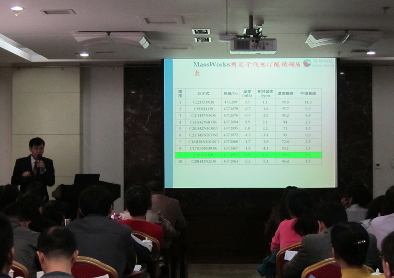 綠綿科技技術(shù)服務(wù)經(jīng)理李衛(wèi)建介紹了第三方的質(zhì)譜質(zhì)量數(shù)及分子式數(shù)據(jù)處理系統(tǒng)MASSWORKS的應(yīng)用,Massworks不僅能解決現(xiàn)在質(zhì)譜分析工作者遇到質(zhì)譜數(shù)據(jù)匹配,結(jié)果確證的難題,而且該系統(tǒng)技術(shù)上先進具有前瞻性和創(chuàng)新的特點,實驗室現(xiàn)有質(zhì)譜儀結(jié)合Massworks已經(jīng)在國內(nèi)外知名度很高的期刊上發(fā)表了許多高水平的文章,如甘肅出入境檢驗檢疫局,中國農(nóng)業(yè)大學(xué),浙江大學(xué)等,如果感興趣或索取Massworks文章,請聯(lián)系綠綿科技。