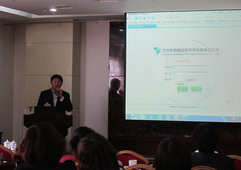 蘭州生物制品研究所有限公司實驗室魏主任現(xiàn)場演示了其所在的實驗室采用云端技術(shù)的LabOS數(shù)據(jù)管理系統(tǒng),該系統(tǒng)用了不到一個月就從確定合同到部署完畢,部署速度快而且運行穩(wěn)定。魏主任通過無線網(wǎng)絡(luò)在會場直接進入到實驗室數(shù)據(jù)管理系統(tǒng),以實驗室主任的身份登錄可以看到主任權(quán)限下所有信息。