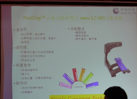 綠綿科技李斌做“與質(zhì)譜相關(guān)產(chǎn)品和技術(shù)”的報告,綠綿科技在近推出的液質(zhì)用大流量氮氣發(fā)生器(產(chǎn)品信息見http://m.meiwenxuan.cn/products/product_id-82.html )、DART直接進樣實時離子源(產(chǎn)品信息見http://m.meiwenxuan.cn/products/product_id-80.html )、質(zhì)譜數(shù)據(jù)解析處理系統(tǒng)Massworks(產(chǎn)品信息見http://m.meiwenxuan.cn/products/product_id-65.html)、專用納噴技術(shù)PicoChip產(chǎn)品(http://m.meiwenxuan.cn/news/n_id-241.html ),廣泛應(yīng)用各儀器廠家的質(zhì)譜儀器。