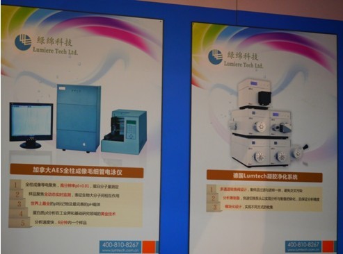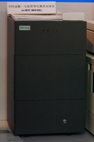 (上圖:綠綿科技在BCEIA2013展出全柱成像等電聚焦毛細管電泳儀器實物圖)