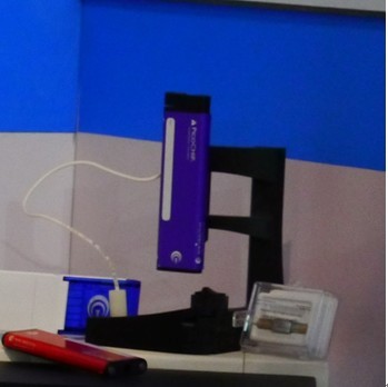 PicoChip產(chǎn)品,這是一種即插即用的裝置,包括一個支架(可溫控到80℃)、和非常簡便使用的、長相頗似iPod的、顏色亮麗的PicoChip(內(nèi)部是填充好各種填料的微徑柱和一體化噴針,即內(nèi)嵌PicoFrit)。PicoChip結(jié)合了已知的幾種技術(shù),包括:導(dǎo)電的連接頭、PicoFrit柱、無需工具的安裝臺、內(nèi)嵌高電壓觸點、10.5cm長的柱床(可安裝內(nèi)徑為50、75、100或150 um的Picofrit柱,可填充超過60種HPLC填料)、高性能噴頭(10或15 um)??梢苑浅:唵蔚貙⒅Ъ芄潭ㄓ谫|(zhì)譜的前端,支架具有一定磁性,將PicoChip輕放在支架上即可固定,然后,將PicoChip后端與LC流出管線連接,然后從PicoChip后端推Chip key,則噴針從前端露出,即可開始納噴霧實驗。PicoChip易于使用,即插即用,只需一次連接,可溫控,工廠確保電壓有效連接,Chip之間的重現(xiàn)性高,價格跟購買一根傳統(tǒng)的填好填料帶噴針的微徑柱幾乎一樣。