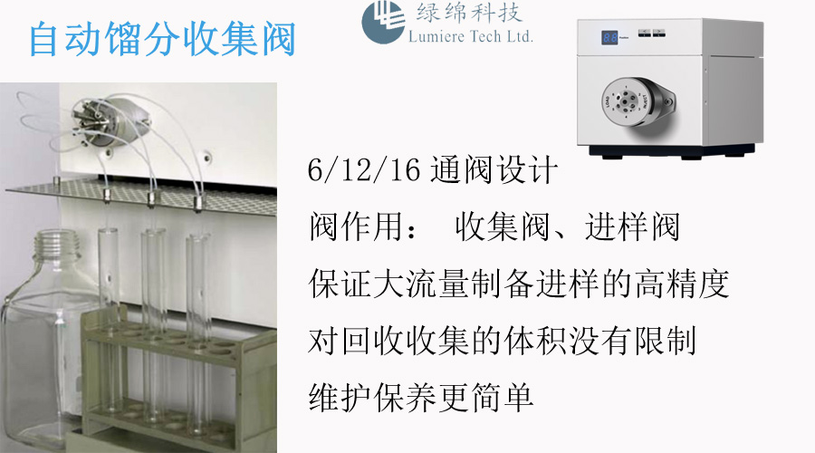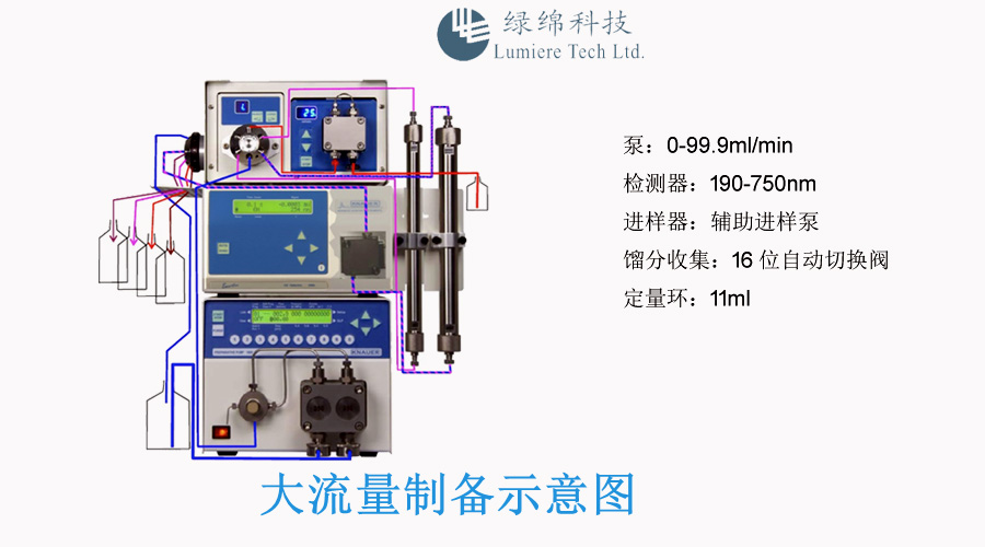綠綿科技在展商儀器秀的活動中介紹了LUMTECH全新的制備液相系統(tǒng),多種流量配置方案滿足不同用戶的制備需求、輔助進(jìn)樣泵設(shè)計滿足大體積進(jìn)樣、自動餾分收集閥系統(tǒng)。