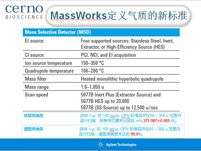 在目前氣質(zhì)技術(shù)參數(shù)中,很少有像安捷倫5977GCMS給出質(zhì)量準(zhǔn)確度和譜圖準(zhǔn)確度指標(biāo)的廠家了。