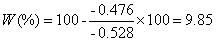 牛奶的實際冰點 T0 = -0.528℃,摻水后測定的冰點 Ti = -0.476℃,