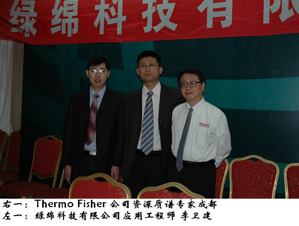 2008年3月20日,綠綿科技有限公司與Thermo Fisher(原熱電公司)色譜質(zhì)譜部攜手在青海省天年閣飯店舉辦新質(zhì)譜技術(shù)及食品安全分析應(yīng)用交流會(huì)。