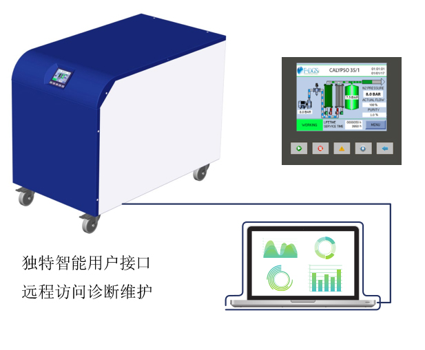 使用新的彩色觸摸屏技術(shù)控制發(fā)生器,實時狀態(tài)顯示、出口/入口壓力,為使用者觀察和維護儀器提供實時顯示窗口,可以快速得到需要的信息,遠程訪問以進行診斷控制。