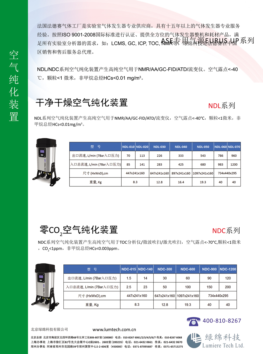 法國法德賽氣體工廠是實驗室氣體發(fā)生器專業(yè)供應(yīng)商,具有十五年以上的氣體發(fā)生器專業(yè)服務(wù)經(jīng)驗。按照ISO 9001-2008國際標(biāo)準(zhǔn)進行認(rèn)證的、提供全方位的氣體發(fā)生器整機和耗材產(chǎn)品,滿足所有實驗室分析器的需求,如:LCMS, GC, ICP, TOC, NMR等,綠綿科技是F-DGSi在中國區(qū)銷售和售后服務(wù)總代理。
