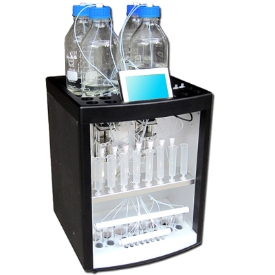 SPE-01凈化站既可以使用傳統(tǒng)的色譜柱又可以使用標準的固相萃取柱。用戶可以選擇使用多達五種淋洗溶劑。 一個完整的凈化方法包括: 先用強極性的溶劑(如丙烔) 潤濕凈化柱固相填料; 再用弱極性的溶劑(如正己烷)處理和平衡; 加樣后,先用弱極性的溶劑洗去樣品中的脂質類等弱極性雜質,溶劑極性可逐步增強; 后用適當?shù)娜軇⒛繕宋锵疵摬⑹占T趦艋鄽埩舴治鰳悠窌r,不同極性的農(nóng)藥可以分別收集到兩個不同的組份中。