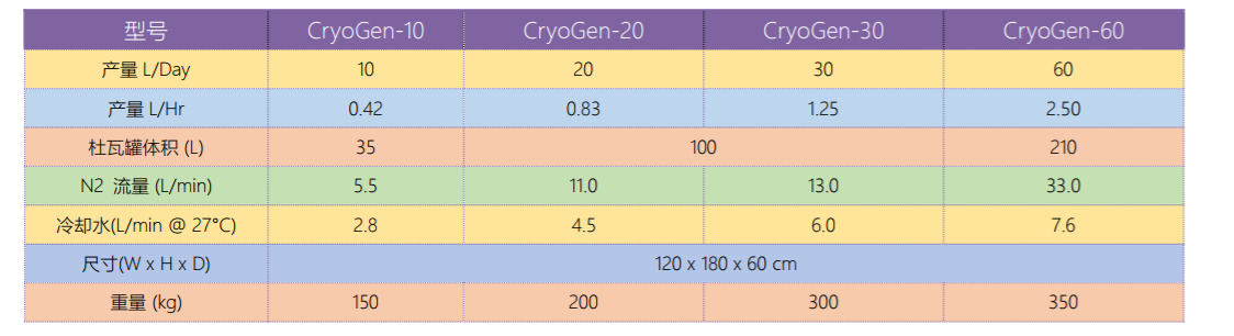 CryoGen液氮純化裝置技術(shù)規(guī)格